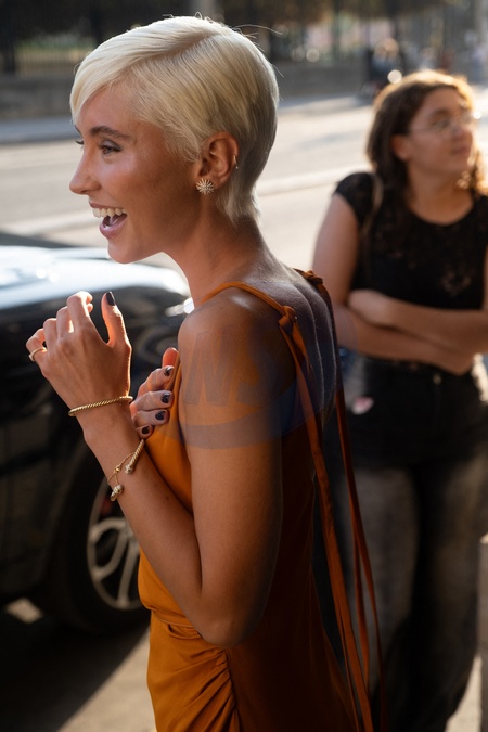 Iris Law quitte l'hôtel Meurice lors de la Fashion Week de Paris (PFW) le 8 juillet 2025. © Julien Sarkissian/Bestimage Iris Law leaves the Hotel Meurice during Paris Fashion Week (PFW) on July 8, 2025.