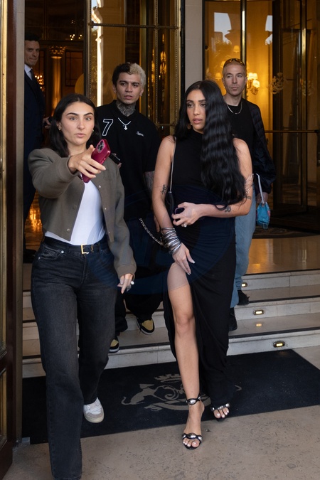 Lourdes Leon quitte l'hôtel Meurice avec son compagnon lors de la Fashion Week de Paris (PFW) le 8 juillet 2025. © Julien Sarkissian/Bestimage Lourdes Leon leaves the Meurice Hotel with her partner during Paris Fashion Week (PFW) on July 8, 2025.