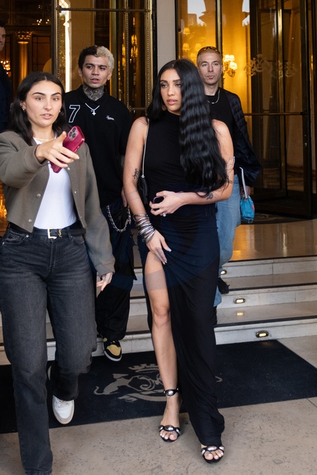 Lourdes Leon quitte l'hôtel Meurice avec son compagnon lors de la Fashion Week de Paris (PFW) le 8 juillet 2025. © Julien Sarkissian/Bestimage Lourdes Leon leaves the Meurice Hotel with her partner during Paris Fashion Week (PFW) on July 8, 2025.