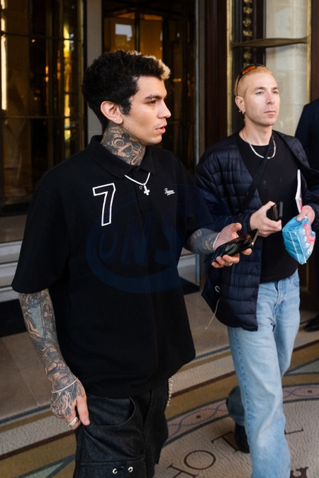 Lourdes Leon quitte l'hôtel Meurice avec son compagnon lors de la Fashion Week de Paris (PFW) le 8 juillet 2025. © Julien Sarkissian/Bestimage Lourdes Leon leaves the Meurice Hotel with her partner during Paris Fashion Week (PFW) on July 8, 2025.