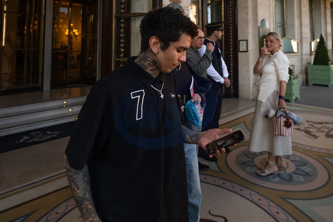 Lourdes Leon quitte l'hôtel Meurice avec son compagnon lors de la Fashion Week de Paris (PFW) le 8 juillet 2025. © Julien Sarkissian/Bestimage Lourdes Leon leaves the Meurice Hotel with her partner during Paris Fashion Week (PFW) on July 8, 2025.