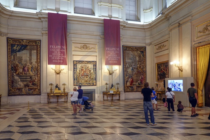 Spain, Madrid, Royal Palace of Madrid Palacio Real, Halberdiers' Hall, formerly hall of the palace guards, Credit:Fabio Mazzarella / Avalon