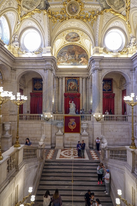 Spain, Madrid, Royal Palace of Madrid Palacio Real, Great Staircase inside, Credit:Fabio Mazzarella / Avalon