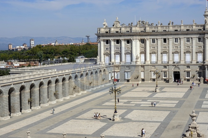 Spain, Madrid, Royal Palace of Madrid Palacio Real in Plaza de la Armeria square, Credit:Fabio Mazzarella / Avalon