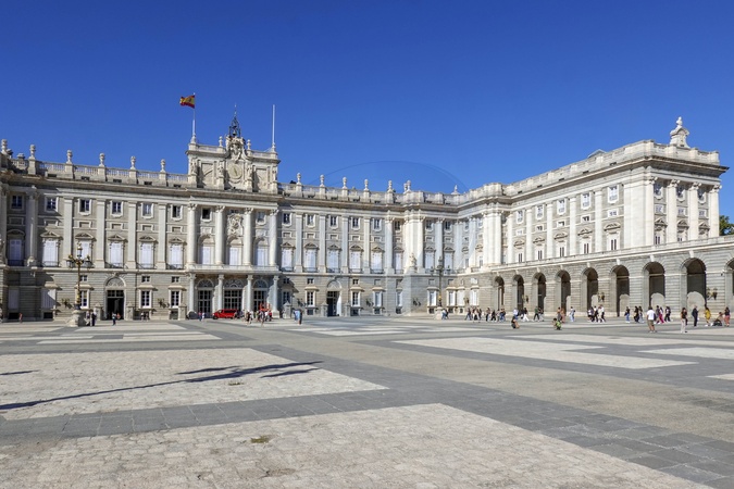 Spain, Madrid, Royal Palace of Madrid Palacio Real in Plaza de la Armeria square, Credit:Fabio Mazzarella / Avalon