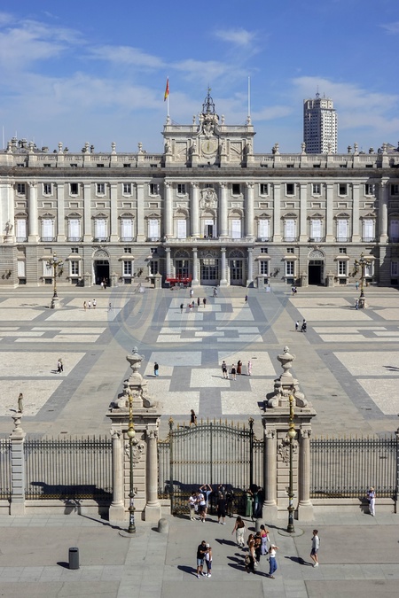 Spain, Madrid, Royal Palace of Madrid Palacio Real in Plaza de la Armeria square, Credit:Fabio Mazzarella / Avalon