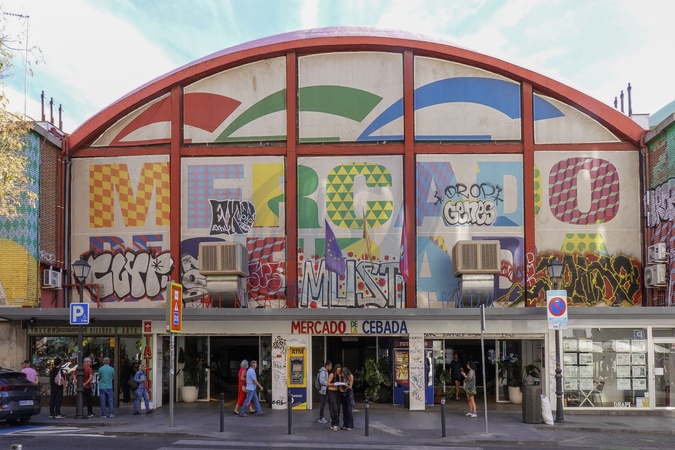 Spain, Madrid, Exterior view of Cebada Market (in Spanish: Mercado de la Cebada), one of the largest food markets in Madrid, tourism, Credit:Fabio Mazzarella / Avalon