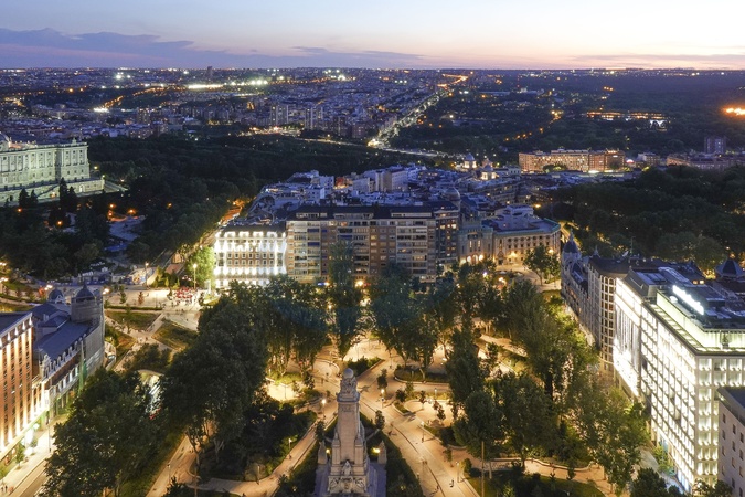 Spain, Madrid, Plaza de Espana, night view from above, tourism, Credit:Fabio Mazzarella / Avalon