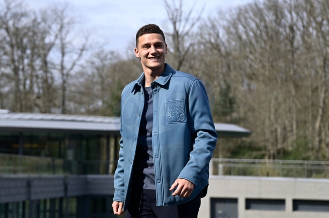 Mariage - Benjamin Pavard et Kleofina Pnishi se sont mariés en Italie - Benjamin Pavard arrive pour l'entraînement de l'équipe de France de football pour le match de qualification à l'Euro 2024 contre les Pays-Bas au centre de formation et centre National du Footbal de Clairefontaine-en-Yvelines, France, le 20 march 2023. © Federico Pestellini/Panoramic/Bestimage French players arrive for training for the France soccer team ahead of the Euro 2024 qualifying match against the Netherlands at the training center and National Footbal Center in Clairefontaine-en-Yvelines, France, on 20 March 2023.