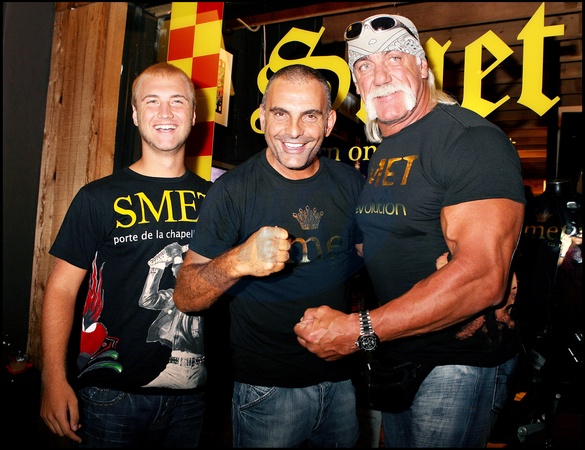 Rétro - Décès de Hulk Hogan star du catch - HULK HOGAN ET SON FILS NICK HOGAN - LE STYLISTE CHRISTIAN AUDIGIER PRESENTE SA NOUVELLE COLLECTION SMET "BORN ON THE STREET" EN L' HONNEUR DU CHANTEUR JOHNNY HALLYDAY, A SA BOUTIQUE SUR MELROSE AVENUE FRENCH DESIGNER CHRISTIAN AUDIGIER PRESENT HIS NEW COLLECTION " SMET " BORN ON THE STREET, HONORING FRENCH SINGER LEGEND JOHNNY HALLYDAY, AT HIS BOUTIQUE ON MELROSE AVENUE. Pic : Christian Audigier & Hulk Hogan & son Nick Hogan