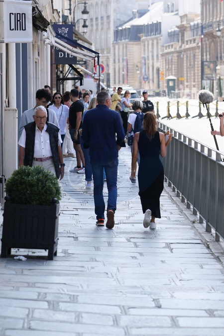 Exclusif - prix Special - No Web - L'actrice et réalisatrice Eva Longoria a été aperçue en tournage ce matin pour la série CNN "Searching for France" à La Parisienne, la célèbre boulangerie parisienne connue pour fournir les baguettes du palais présidentiel français. Dans un décor résolument « Made in France », le tournage reste secret pour l'instant, mais il mêle clairement célébrité et héritage culinaire. Caméras, équipe réduite et parfum de croissants frais : la scène n'est pas passée inaperçue. À l'issue du tournage elle est partie à l'Élysée livrer elle-même les baguettes en compagnie de Mickaël Reydellet, patron de la Parisienne, le 26 juillet 2025. À noter aussi un moment très complice entre 2 scènes avec son coiffeur et sa maquilleuse à la terrasse d'un café. © Julien Sarkissian / Bestimage Exclusive - Special Price - No Web - Actress and director Eva Longoria was spotted filming this morning for the CNN series "Searching for France" at La Parisienne, the famous Parisian bakery known for supplying baguettes to the French presidential palace. In a decidedly "Made in France" setting, the shoot remains secret for now, but it clearly blends celebrity and culinary heritage. Cameras, a small crew, and the scent of fresh croissants: the scene did not go unnoticed. After filming, she left for the Élysée Palace to deliver the baguettes herself, accompanied by Mickaël Reydellet, owner of La Parisienne, on July 26, 2025. Also worth noting is a very intimate moment between two scenes with her hairdresser and makeup artist on a café terrace.
