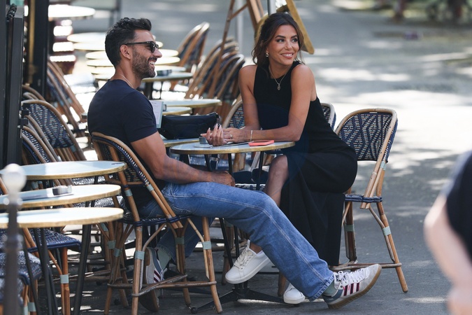 Exclusif - prix Special - No Web - L'actrice et réalisatrice Eva Longoria a été aperçue en tournage ce matin pour la série CNN "Searching for France" à La Parisienne, la célèbre boulangerie parisienne connue pour fournir les baguettes du palais présidentiel français. Dans un décor résolument « Made in France », le tournage reste secret pour l'instant, mais il mêle clairement célébrité et héritage culinaire. Caméras, équipe réduite et parfum de croissants frais : la scène n'est pas passée inaperçue. À l'issue du tournage elle est partie à l'Élysée livrer elle-même les baguettes en compagnie de Mickaël Reydellet, patron de la Parisienne, le 26 juillet 2025. À noter aussi un moment très complice entre 2 scènes avec son coiffeur et sa maquilleuse à la terrasse d'un café. © Julien Sarkissian / Bestimage Exclusive - Special Price - No Web - Actress and director Eva Longoria was spotted filming this morning for the CNN series "Searching for France" at La Parisienne, the famous Parisian bakery known for supplying baguettes to the French presidential palace. In a decidedly "Made in France" setting, the shoot remains secret for now, but it clearly blends celebrity and culinary heritage. Cameras, a small crew, and the scent of fresh croissants: the scene did not go unnoticed. After filming, she left for the Élysée Palace to deliver the baguettes herself, accompanied by Mickaël Reydellet, owner of La Parisienne, on July 26, 2025. Also worth noting is a very intimate moment between two scenes with her hairdresser and makeup artist on a café terrace.