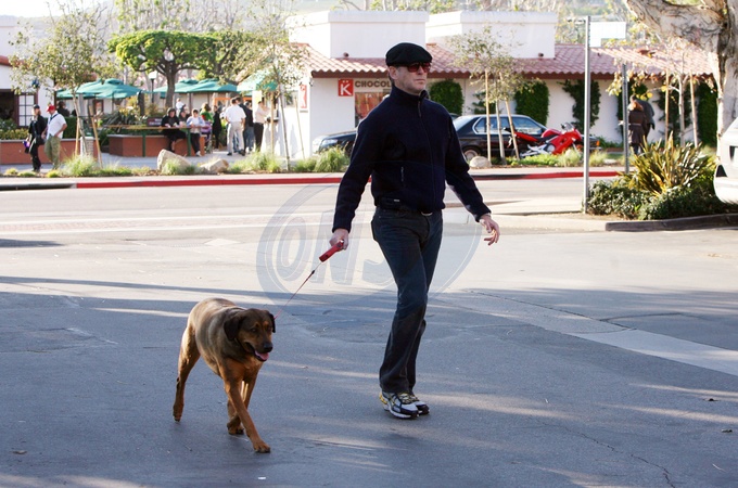Pierce Brosnan z psem na spacerze, Malibu