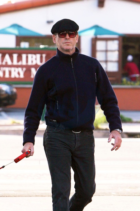 Pierce Brosnan z psem na spacerze, Malibu