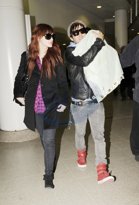 Ashlee Simpson i Pete Wentz z dzieckiem na lotnisku, Manchester