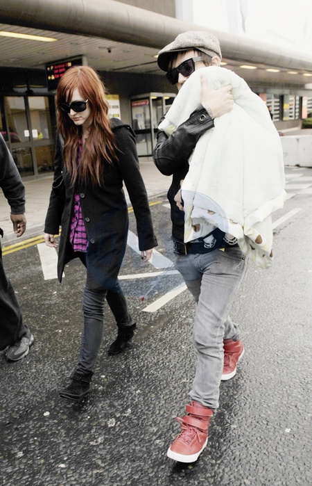 Ashlee Simpson i Pete Wentz z dzieckiem na lotnisku, Manchester