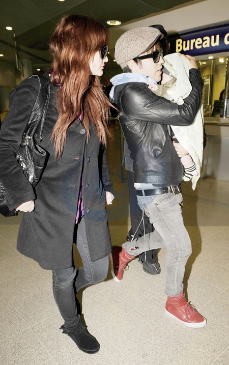 Ashlee Simpson i Pete Wentz z dzieckiem na lotnisku, Manchester