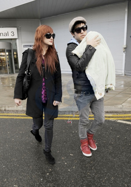 Ashlee Simpson i Pete Wentz z dzieckiem na lotnisku, Manchester