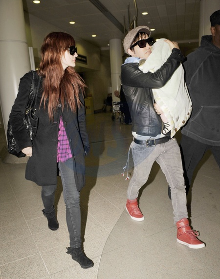 Ashlee Simpson i Pete Wentz z dzieckiem na lotnisku, Manchester
