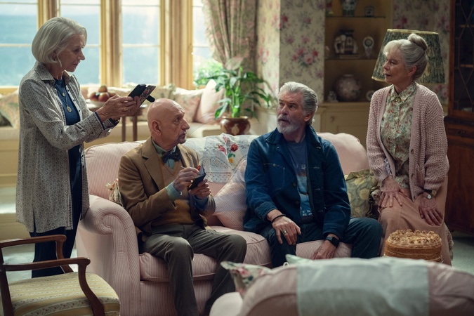 Helen Mirren, Pierce Brosnan, Sir Ben Kingsley, Celia Imrie, "The Thursday Murder Club" (2025), Credit:Giles Keyte/Netflix / Avalon