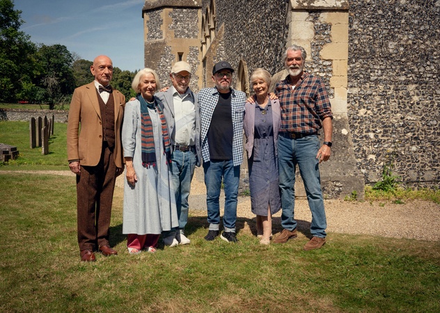 Sir Ben Kingsley, Helen Mirren, Steven Spielberg, Chris Columbus, Celia Imrie, Pierce Brosnan, "The Thursday Murder Club" (2025), Credit:Giles Keyte/Netflix / Avalon
