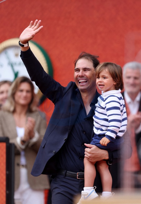 Info - Rafael Nadal, papa pour la seconde fois d'un garçon prénommé Miquel - Rafael Nadal et son fils Rafael Junior - Hommage à Rafael Nadal lors des internationaux de France de tennis à Roland Garros le 25 mai 2025. © Dominique Jacovides / Cyril Moreau / Bestimage Tribute to Rafael Nadal during the French international tennis tournament at Roland Garros on 25 May 2025.
