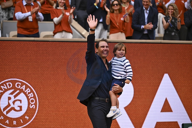 Info - Rafael Nadal, papa pour la seconde fois d'un garçon prénommé Miquel - Rafael Nadal et son fils Rafael Junior - Hommage à Rafael Nadal lors des Internationaux de France de Tennis de Roland Garros 2025, sur le court Philippe-Chatrier au Complexe Roland-Garros à Paris, France, le 25 mai 2025. © Corinne Dubreuil/Pool FFT/Bestimage Tribute to Rafael Nadal during the French international tennis tournament at Roland Garros on 25 May 2025.