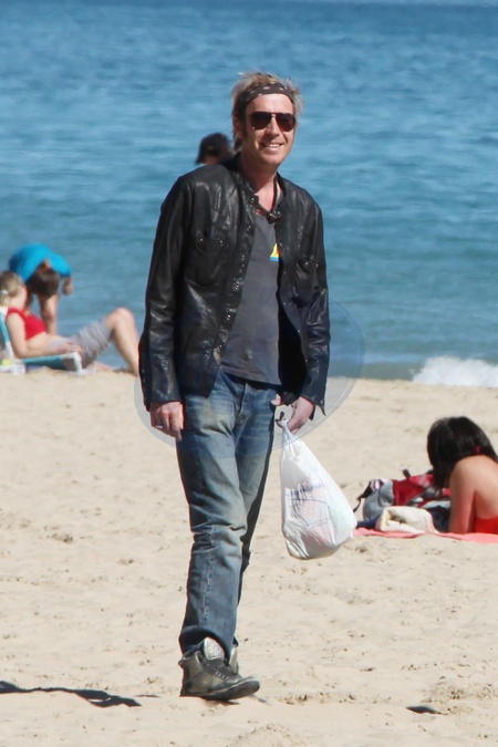 Rhys Ifans odpoczywa z przyjaciolmi na plazy w Alicante, Hiszpania