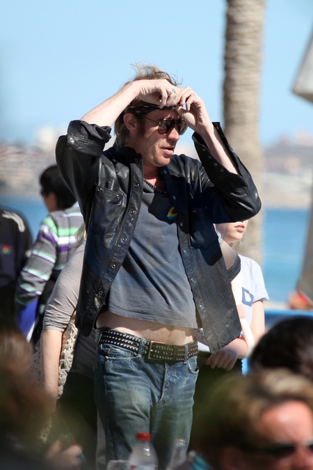 Rhys Ifans odpoczywa z przyjaciolmi na plazy w Alicante, Hiszpania