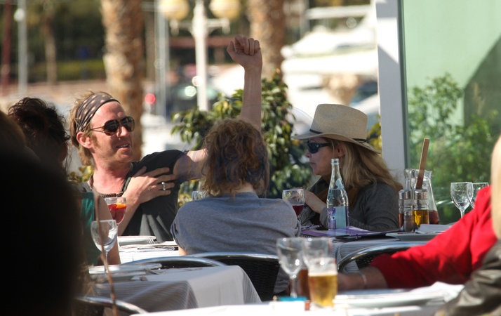 Rhys Ifans odpoczywa z przyjaciolmi na plazy w Alicante, Hiszpania