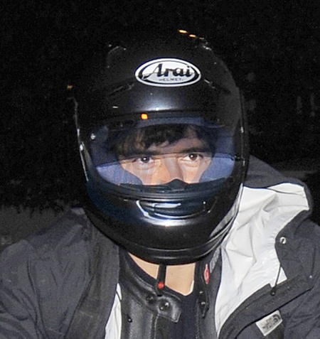 Orlando Bloom odjezdza motocyklem z The Groucho Club, Londyn