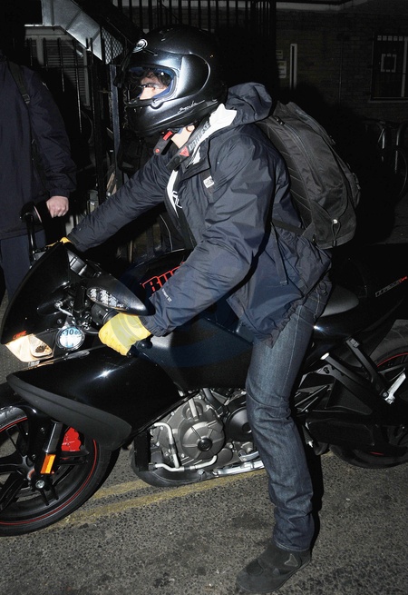 Orlando Bloom odjezdza motocyklem z The Groucho Club, Londyn