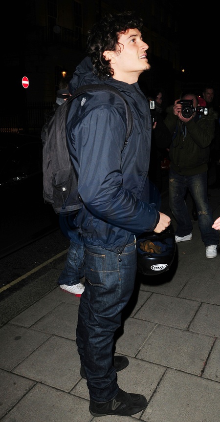 Orlando Bloom odjezdza motocyklem z The Groucho Club, Londyn