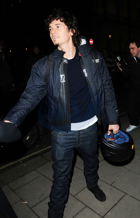Orlando Bloom odjezdza motocyklem z The Groucho Club, Londyn