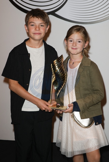Manoa Varvat et Nina Birman - Mention spéciale du jury : Manoâ Varvat et Nina Birman, les deux très jeunes acteurs des « Enfants vont bien » - Cérémonie de remise des prix lors de la 18ème édition du Festival du Film Francophone d'Angoulême (FFA) le 30 août à Angoulême. © Guirec Coadic / Bestimage Awards ceremony at the 18th edition of the Angoulême Francophone Film Festival (FFA) on August 30 in Angoulême.