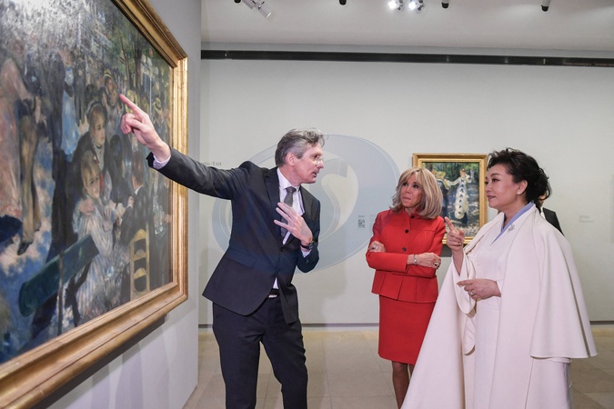 La première Dame française Brigitte Macron et la Première Dame chinoise Peng Liyuan visitent le musée d'Orsay à Paris