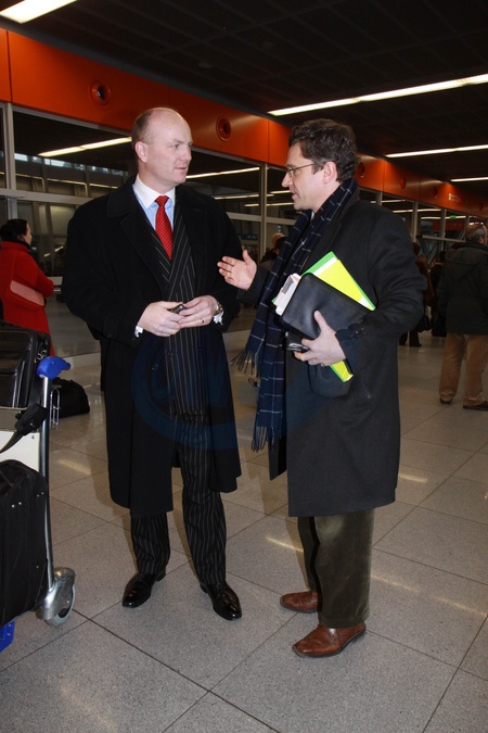 Zalozyciel organizacji Libertas, przeciwnik Traktatu z Lizbony, na lotnisku w Warszawie