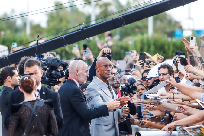 82nd Venice International Film Festival. Red carpet for the film The Smashing Machine. In the photo Dwayne Johnson signs autographs for fans . Venice, Italy 01 September 2025, Credit:Mirco Toniolo / Avalon