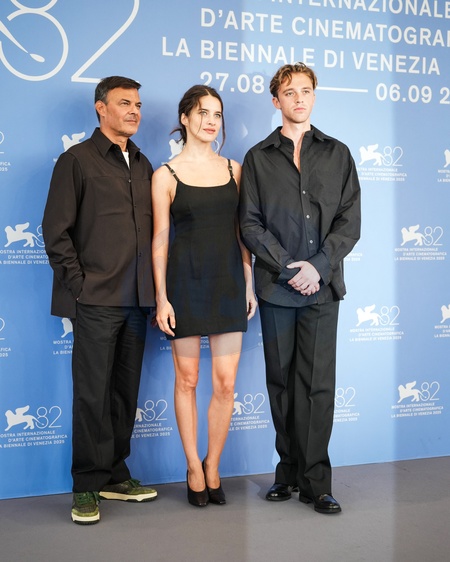 Francois Ozon, Rebecca Marder and Benjamin Voisin attending the L'Etranger photocall during the 82nd Venice International Film Festival on September 2, 2025 in Venice, Italy. (Photo by Lucia Sabatelli / Bestimage) EDITORIAL USE ONLY