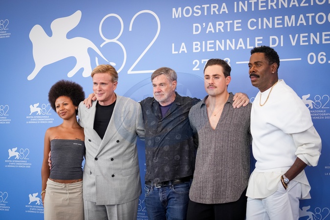 Myha'la Herrold, Cary Elwes, Gus Van Sant, Dacre Montgomery and Colman Domingo attend the "Dead Man's Wire" photocall during the 82nd Venice International Film Festival in Venice, Italy on 02 September 2025., Credit:Stefano Costantino TTL / Avalon