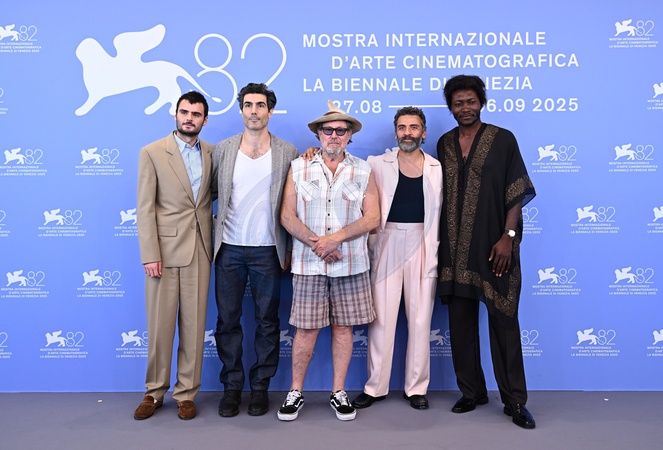 Louis Cancelmi, Benjamin Clementine, Julian Schnabel, Oscar Isaac, Duke Nicholson during "In the hand of Dante" photocall - The 82nd Venice International Film Festival, Venice, Italy 03 Sept 2025, Credit:Maria Laura Antonelli / Avalon