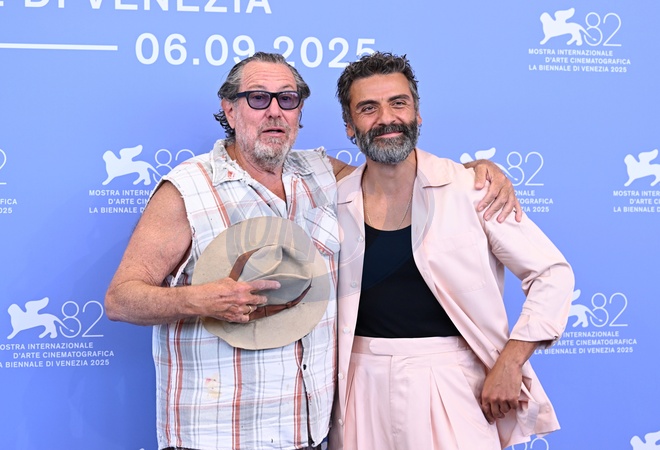 Julian Schnabel, Oscar Isaac during "In the hand of Dante" photocall - The 82nd Venice International Film Festival, Venice, Italy 03 Sept 2025, Credit:Maria Laura Antonelli / Avalon