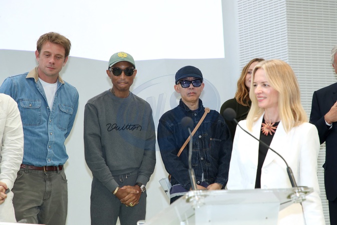 Delphine Arnault devant Jonathan Anderson, Pharrell Williams et Nigo - LVMH Prize 2025 à la Fondation Vuitton à Paris le 02 Septembre 2025. © Bertrand Rindoff / Bestimage No web pour la Belgique et la Suisse LVMH Prize 2025 at the Vuitton Foundation in Paris, France on September 3rd, 2025.