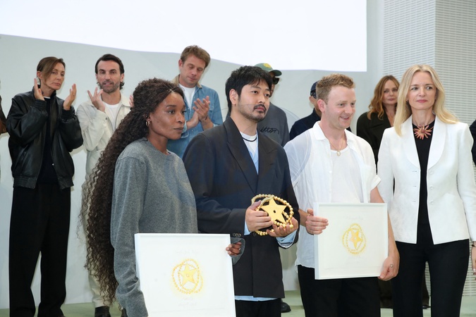 Torishéju Dumi, Lauréate du Prix du Savoir-Faire, Sosh Otsuki, Lauréat du Prix LVMH, Steve O Smith, Lauréat du Prix Karl Lagerfeld et Delphine Arnault (Présidente du LVMH Prize) - LVMH Prize 2025 à la Fondation Vuitton à Paris le 02 Septembre 2025. © Bertrand Rindoff / Bestimage No web pour la Belgique et la Suisse LVMH Prize 2025 at the Vuitton Foundation in Paris, France on September 3rd, 2025.