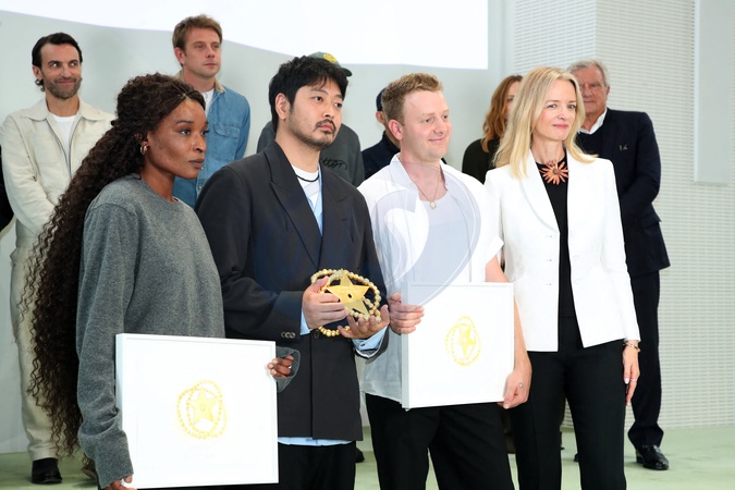 Torishéju Dumi, Lauréate du Prix du Savoir-Faire, Sosh Otsuki, Lauréat du Prix LVMH, Steve O Smith, Lauréat du Prix Karl Lagerfeld et Delphine Arnault (Présidente du LVMH Prize) - LVMH Prize 2025 à la Fondation Vuitton à Paris le 02 Septembre 2025. © Bertrand Rindoff / Bestimage No web pour la Belgique et la Suisse LVMH Prize 2025 at the Vuitton Foundation in Paris, France on September 3rd, 2025.