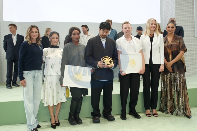 Camille Cottin, Anna Sawai, Torishéju Dumi, Lauréate du Prix du Savoir-Faire, Sosh Otsuki, Lauréat du Prix LVMH, Steve O Smith, Lauréat du Prix Karl Lagerfeld, Delphine Arnault (Présidente du LVMH Prize) et Deepika Padukone - LVMH Prize 2025 à la Fondation Vuitton à Paris le 02 Septembre 2025. © Bertrand Rindoff / Bestimage No web pour la Belgique et la Suisse LVMH Prize 2025 at the Vuitton Foundation in Paris, France on September 3rd, 2025.