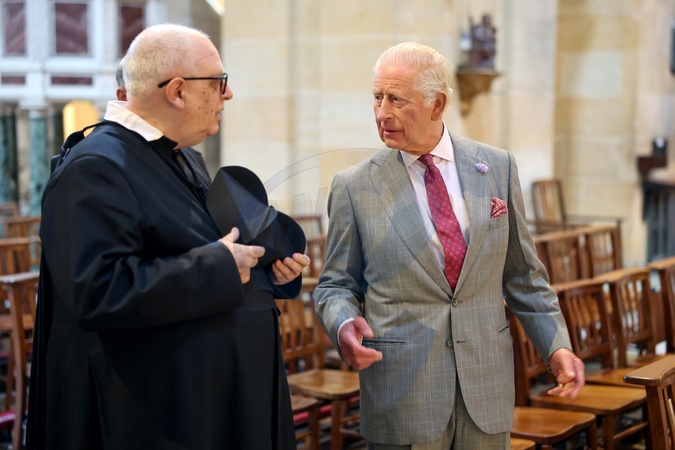 BIRMINGHAM, ENGLAND - SEPTEMBER 03: King Charles III (R) speaks with The Very Reverend Ignatius Harrison during a tour of The Oratory of St. Philip Neri following the canonisation of Cardinal John Henry Newman on September 03, 2025 in Birmingham, England., Credit:Chris Jackson / Avalon