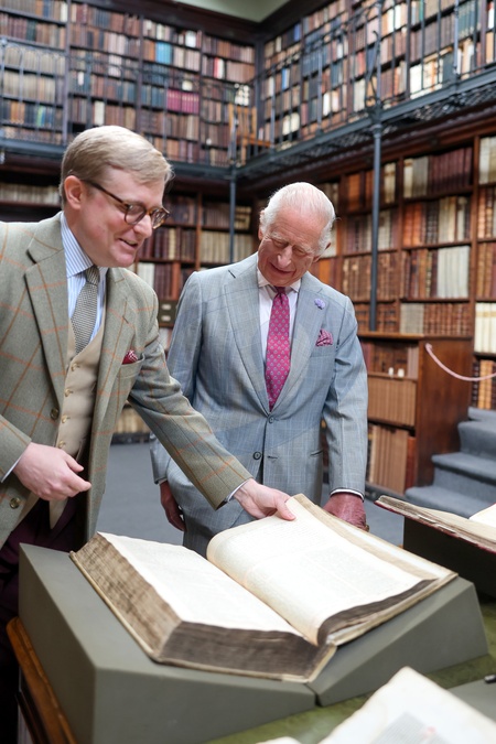 BIRMINGHAM, ENGLAND - SEPTEMBER 03: Daniel Joyce, Newman Archivist and Librarian, Birmingham Oratory, shows King Charles III historic items in the library during a tour of The Oratory of St. Philip Neri following the canonisation of Cardinal John Henry Newman on September 03, 2025 in Birmingham, England., Credit:Chris Jackson / Avalon