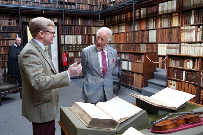 BIRMINGHAM, ENGLAND - SEPTEMBER 03: Daniel Joyce, Newman Archivist and Librarian, Birmingham Oratory, shows King Charles III historic items in the library during a tour of The Oratory of St. Philip Neri following the canonisation of Cardinal John Henry Newman on September 03, 2025 in Birmingham, England., Credit:Chris Jackson / Avalon