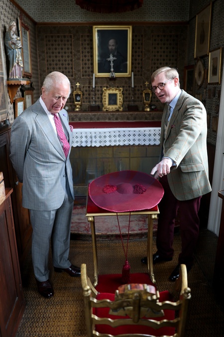 BIRMINGHAM, ENGLAND - SEPTEMBER 03: Daniel Joyce, Newman Archivist and Librarian, Birmingham Oratory (R) shows King Charles III the Cardinal's personal effects in his room (which has remained untouched since his death) during a tour of The Oratory of St. Philip Neri following the canonisation of Cardinal John Henry Newman on September 03, 2025 in Birmingham, England., Credit:Chris Jackson / Avalon